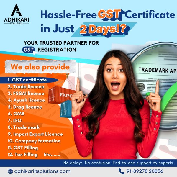Adhikari IT Solutions is a trusted partner for comprehensive business registration, licensing, and tax compliance services across India. We support startups, small businesses, and growing enterprises by handling complex legal and regulatory requirements with accuracy and efficiency. From company formation and GST registration to ongoing compliance and advisory support, our expert team ensures your business stays compliant at every stage. We understand the challenges entrepreneurs face, which is why we focus on delivering clear guidance, timely execution, and reliable solutions. Our mission is to simplify legal and compliance processes, allowing you to concentrate on building, scaling, and successfully growing your business with confidence.